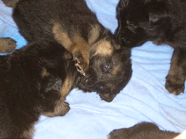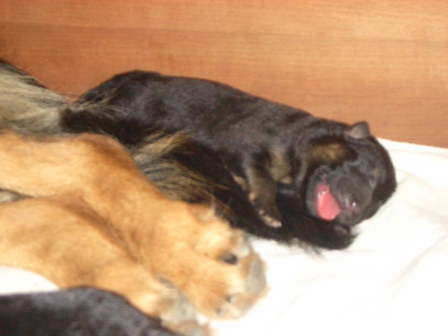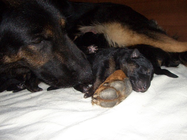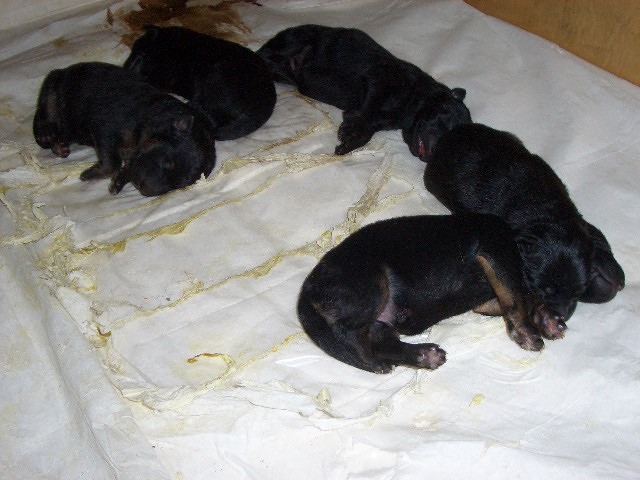 12.08. Die Welpen haben die ersten fünf Tage gut überstanden alle wachsen und einige schneller andere normal. Mein kleiner Freßsack, wie ich ihn am dritten Tag getauft habe, wiegt schon 810 g! Ohne Worte. So und nun noch ein paar Fotos.