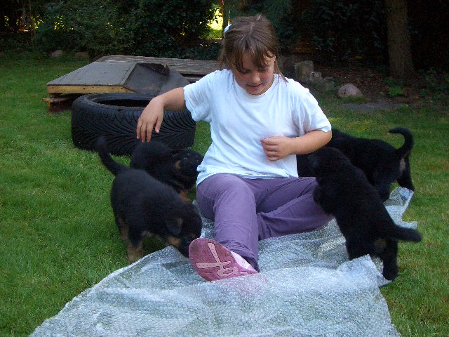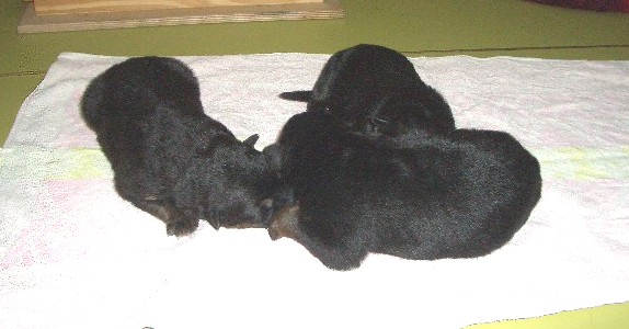 Okay das soll es für heute gewesen sein von uns. Nun hat Ihr mal ein Bild von uns. Unser Frauchen ("Oma" wie sie von allen jetzt genannt wird) hat sich entschlossen das wir mit "S" anfangen. Also mal sehen wer sich tolle Namen mit diesen Buchstaben ausdenkt. Der kleine "schwarze" unter uns (er versteckt sich auf dem Foto oben ein wenig) favorisiert "Stryke" da er der erste schwarze "vom schwarzen Waran" ist!!